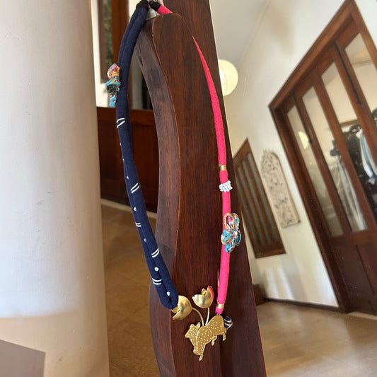 Pichwai inspired brass textile necklaceRegular price Rs2,100.00 INRRegular priceUnit price perRs2,300.00 INRSale price Rs2,100.00 INRSale