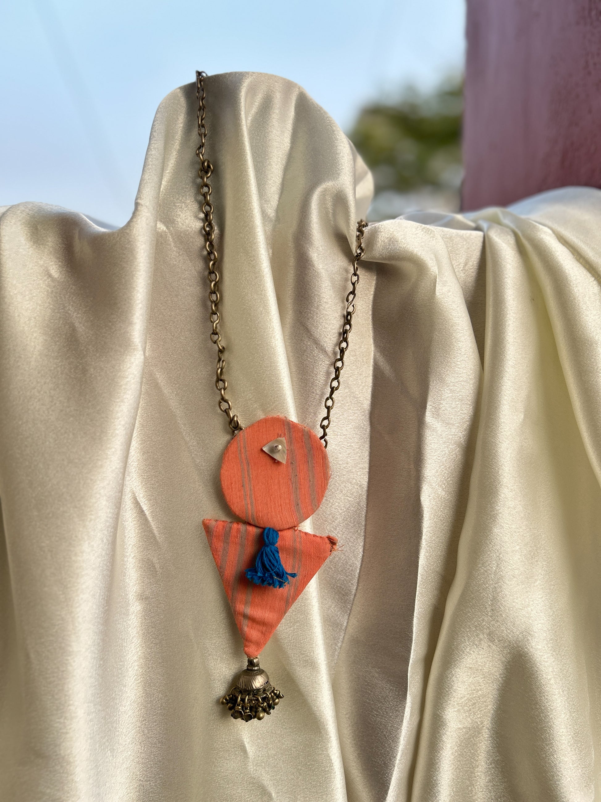 From our Aakar collection arc necklace with beautiful silver pendant. with german silver long chain. This is a statement piece.