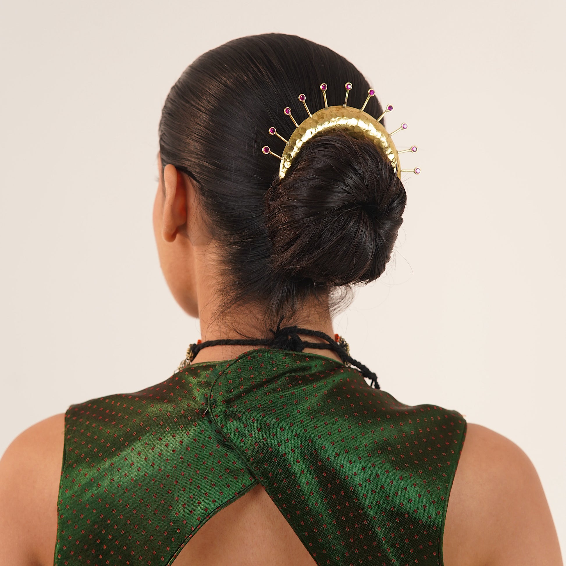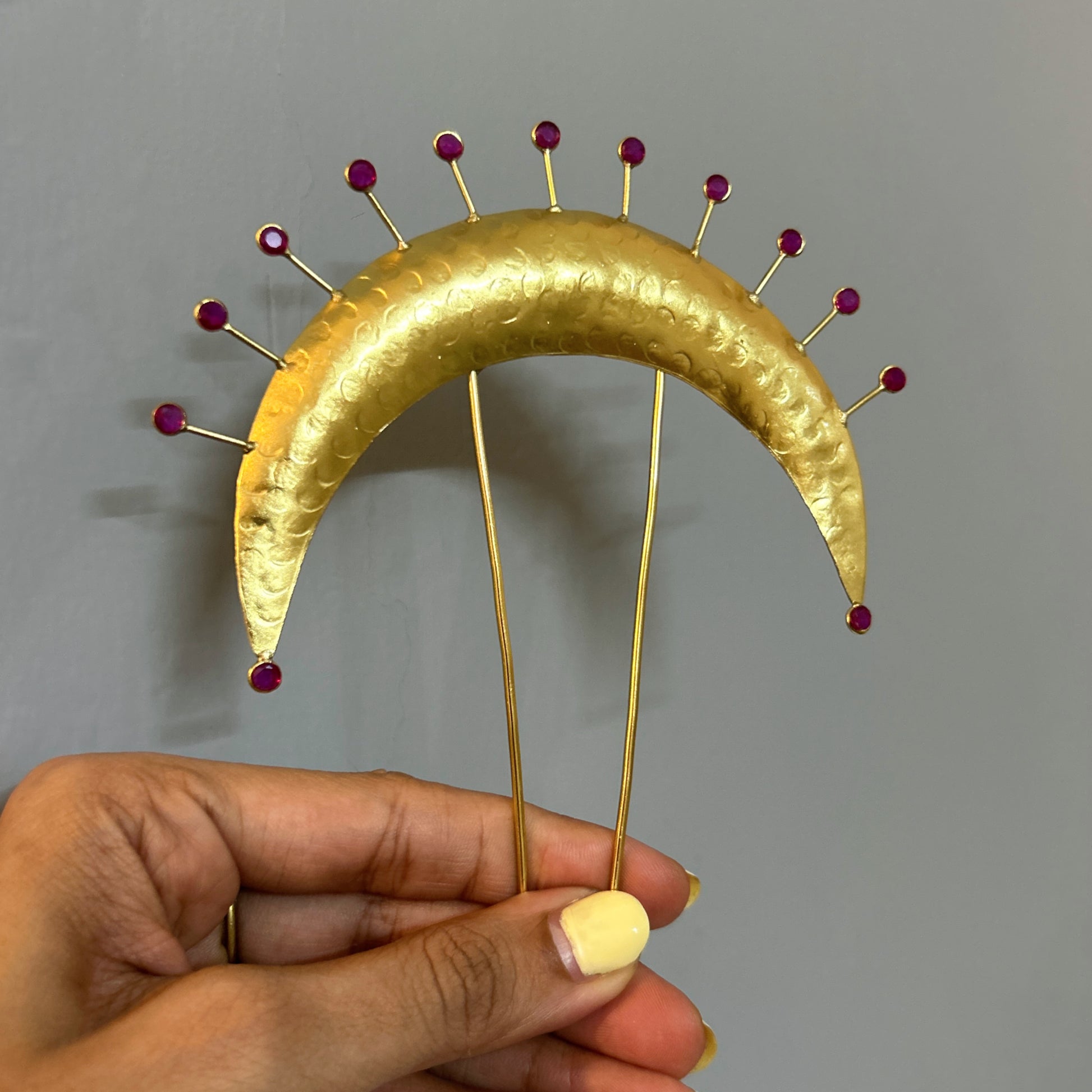 A hair pin to elevate your hair. Embellished with CZ pink stones.
