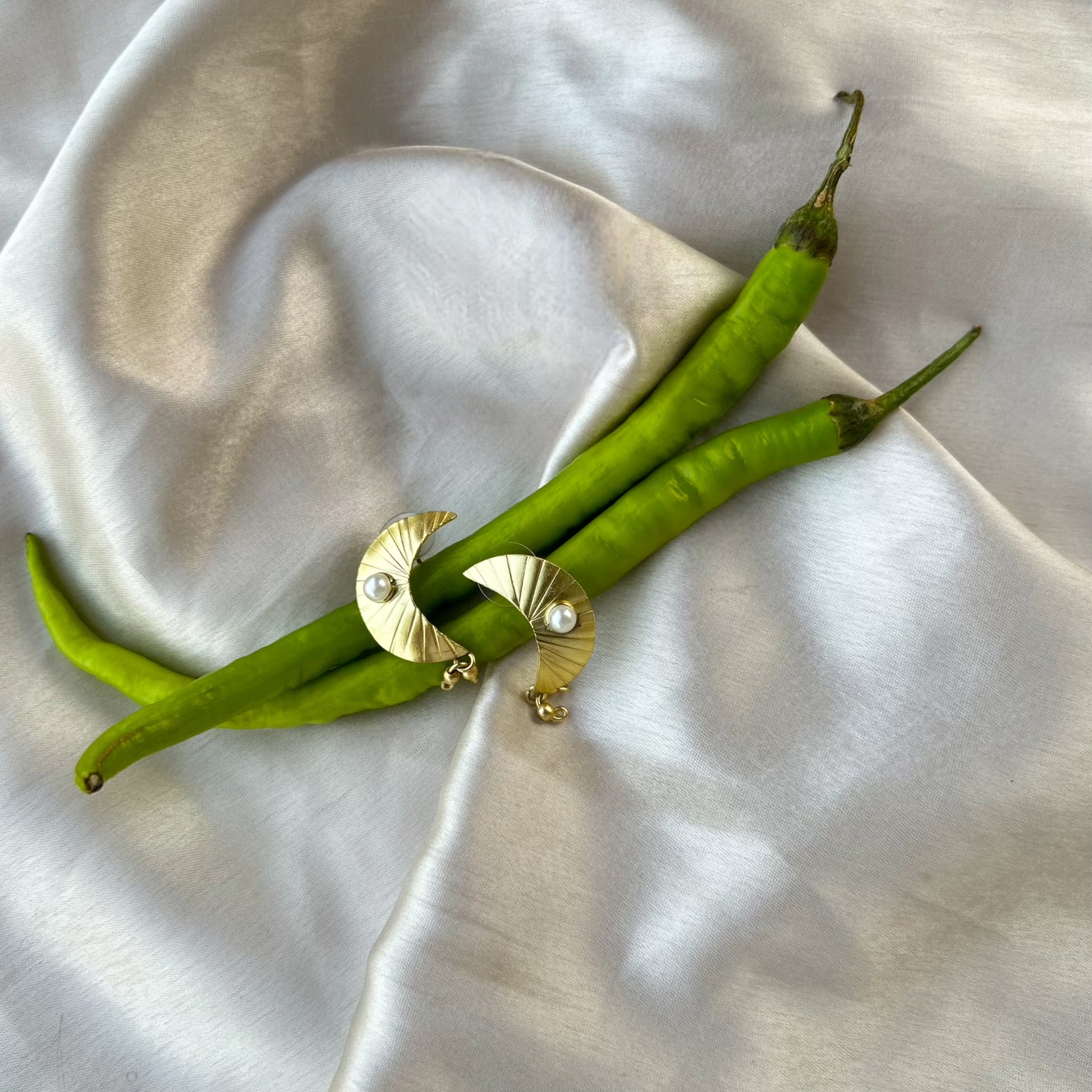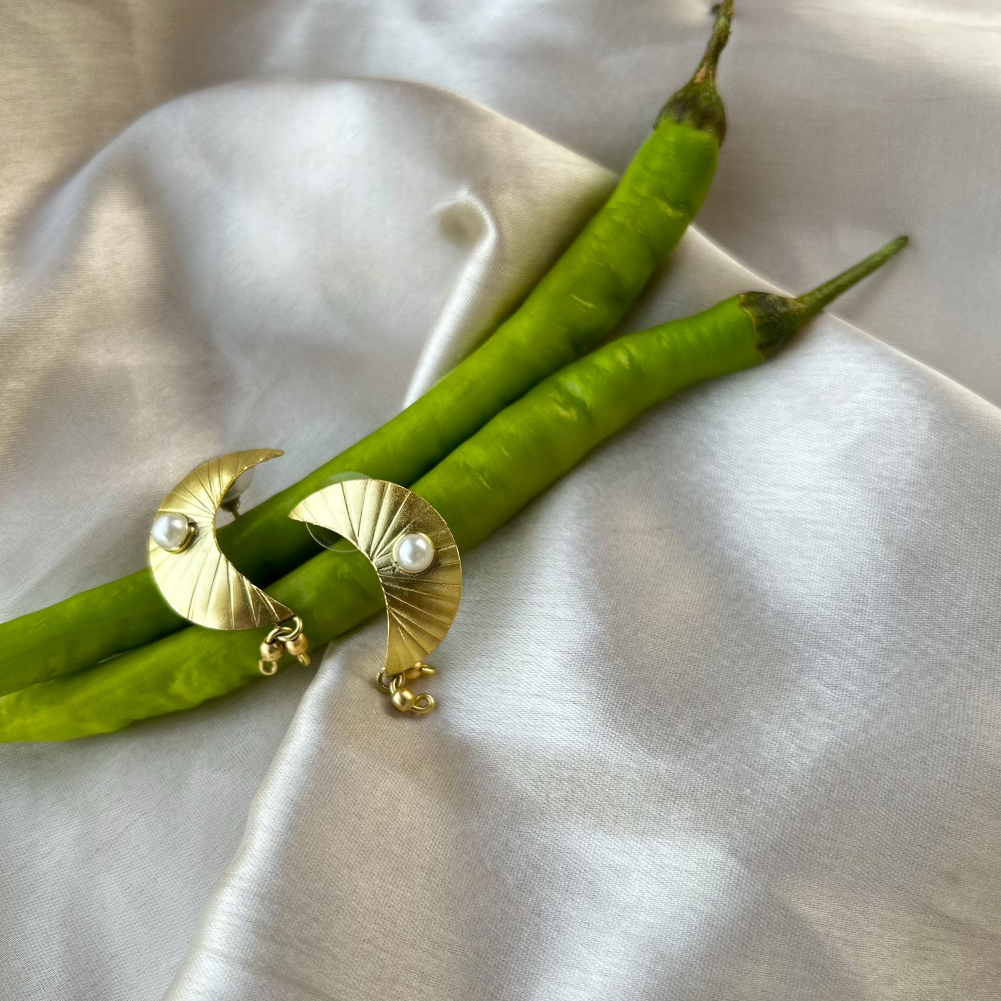 Circle hand hammered stud earrings with delicate CZ pink stone.