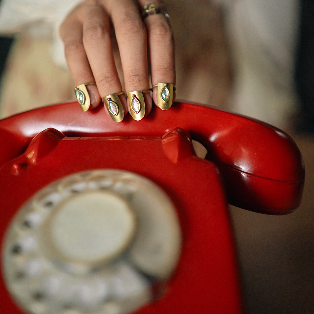 A set of 5. Adjustable rings for your nails made of all things brass.
