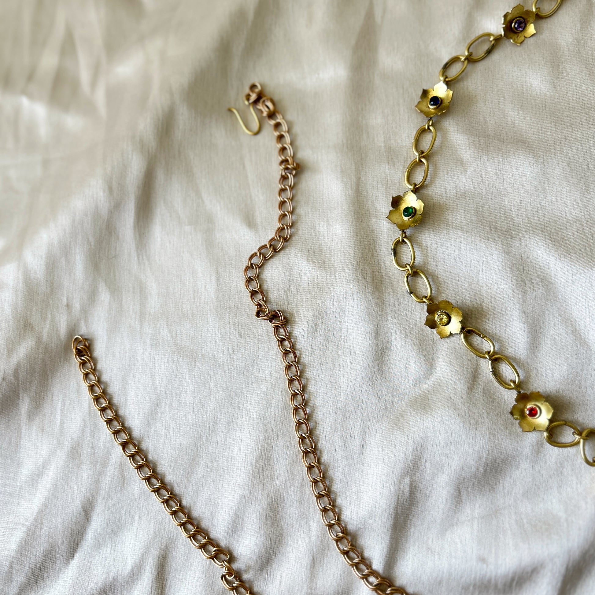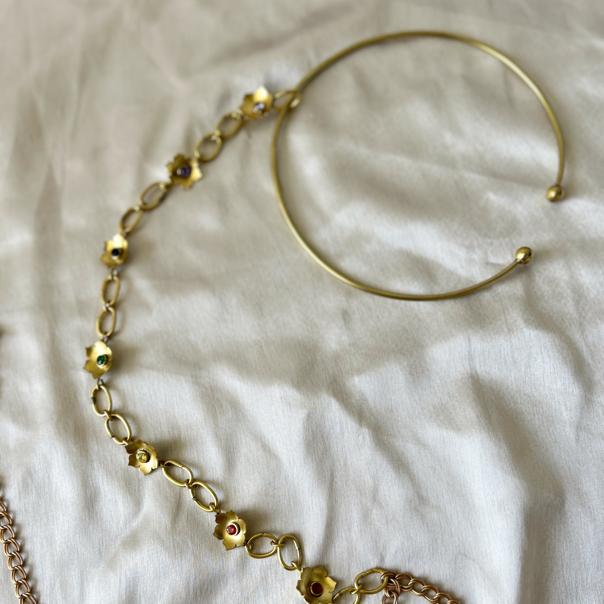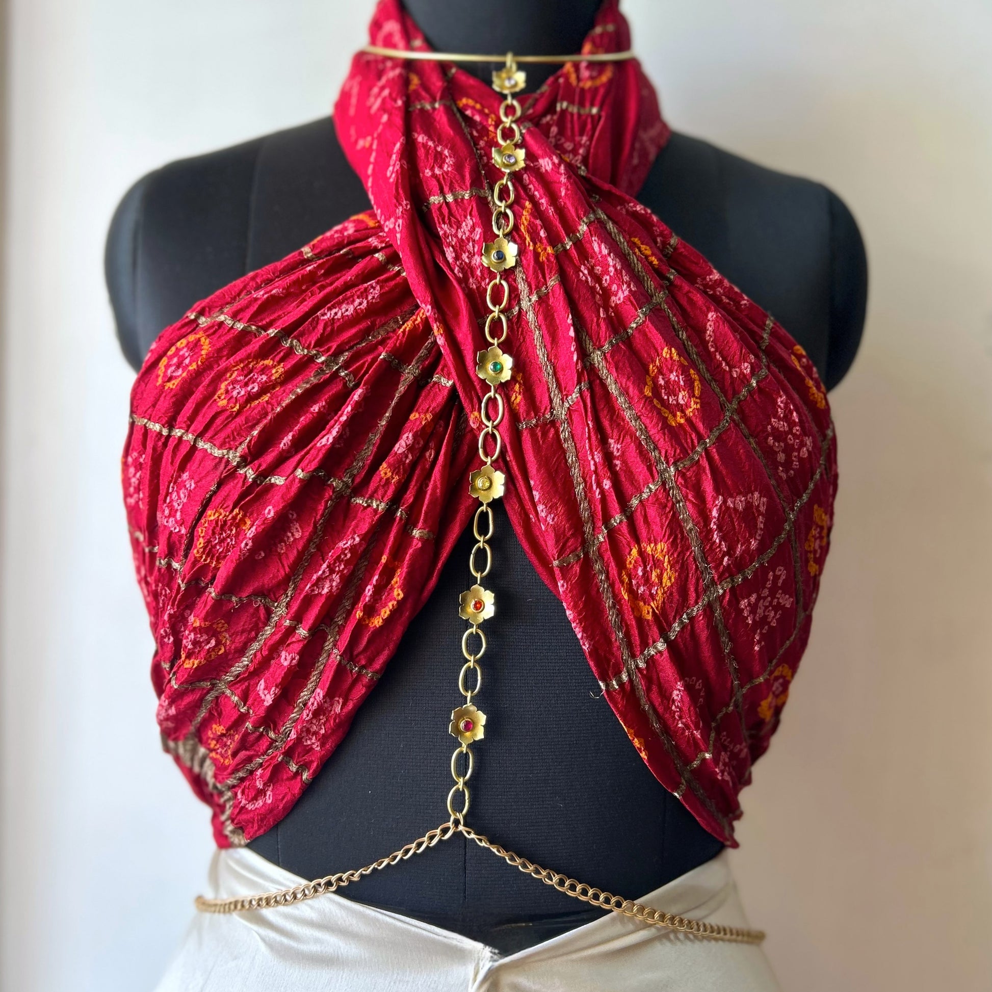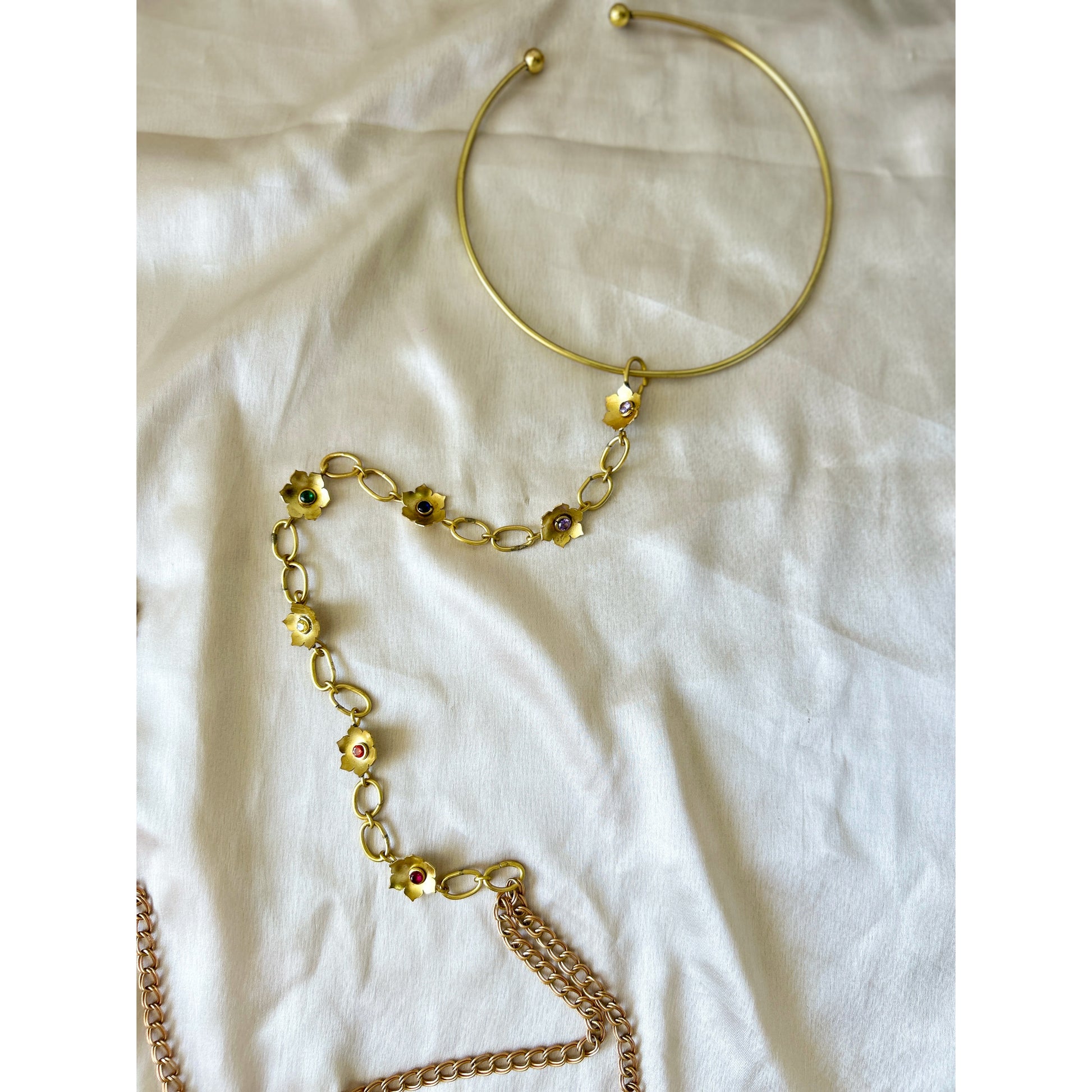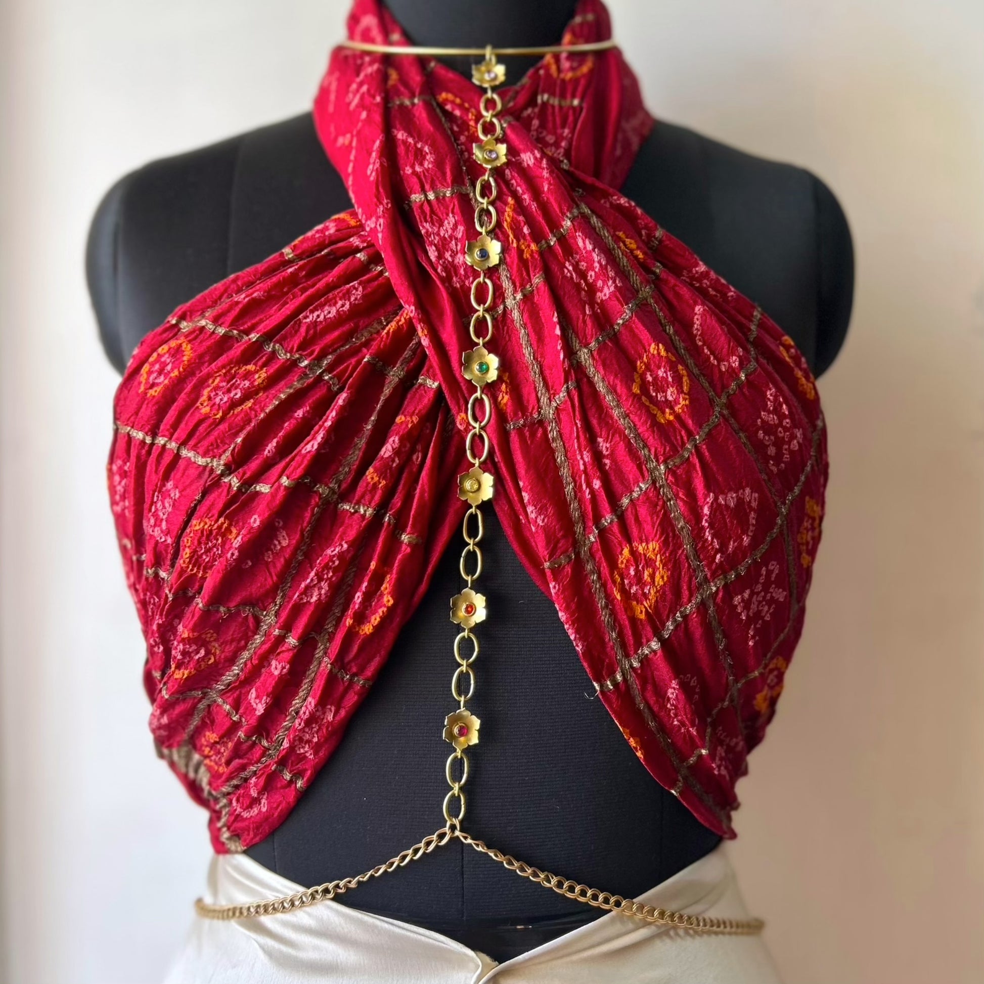 Elevate your ensemble with this exquisite body chain, featuring intricate Indian motives embellished with cubic zirconia (CZ) stones & beads.