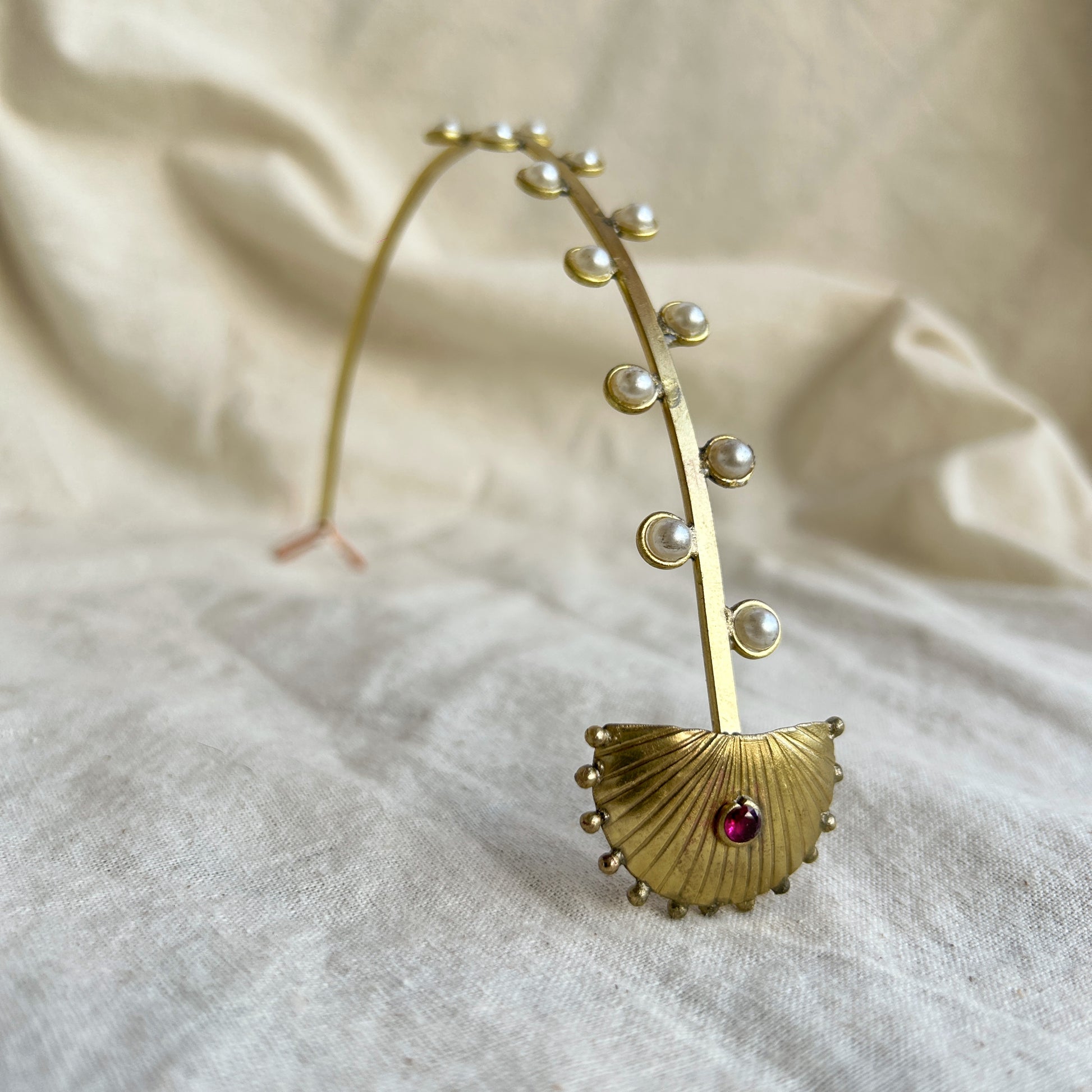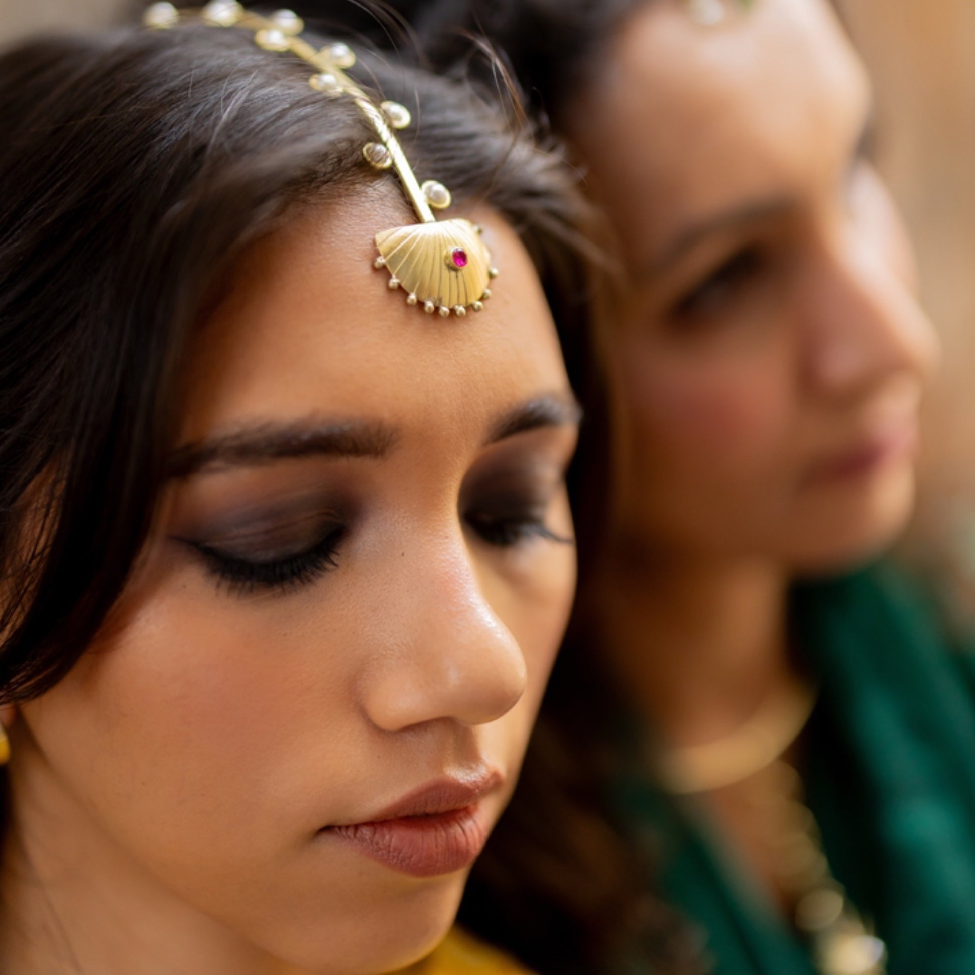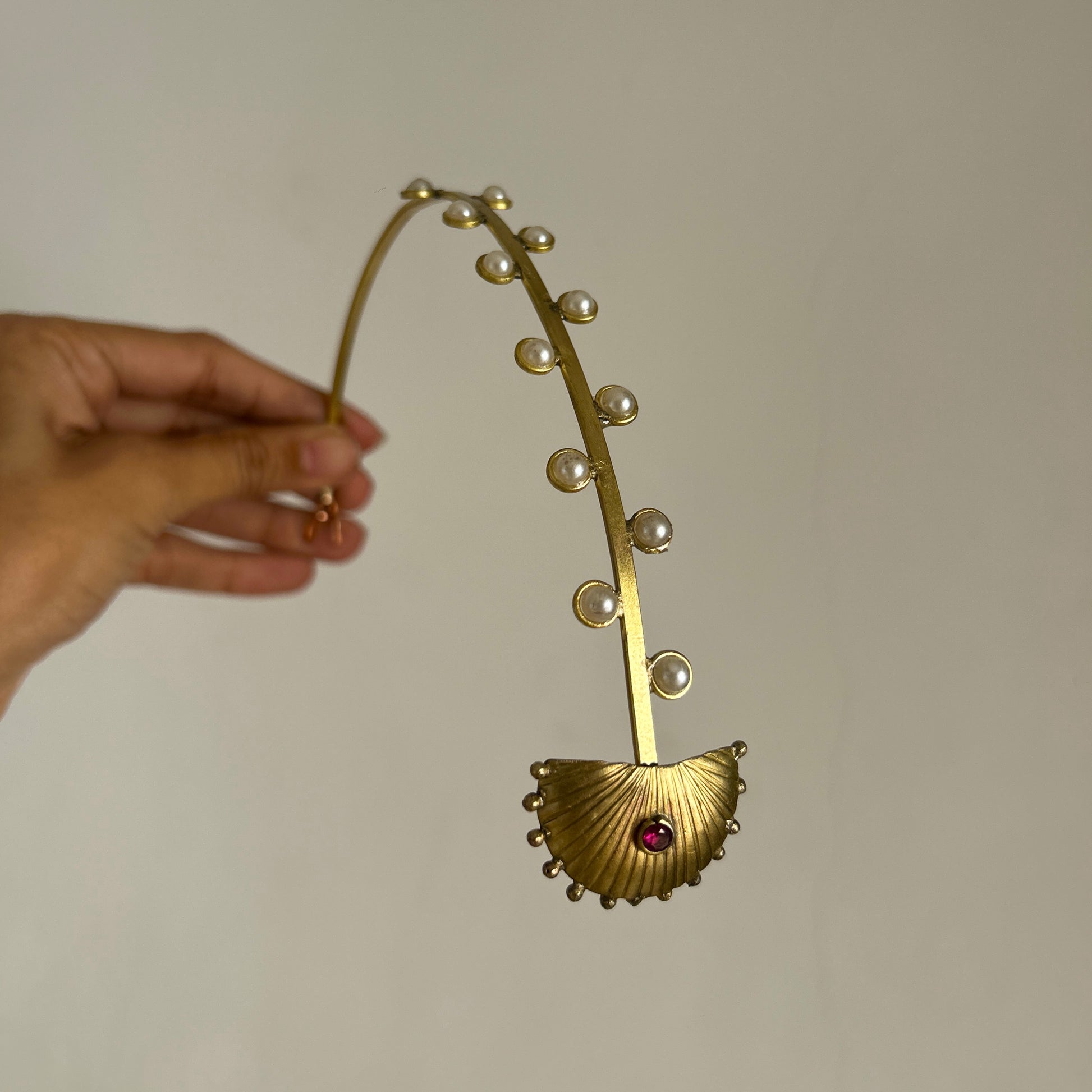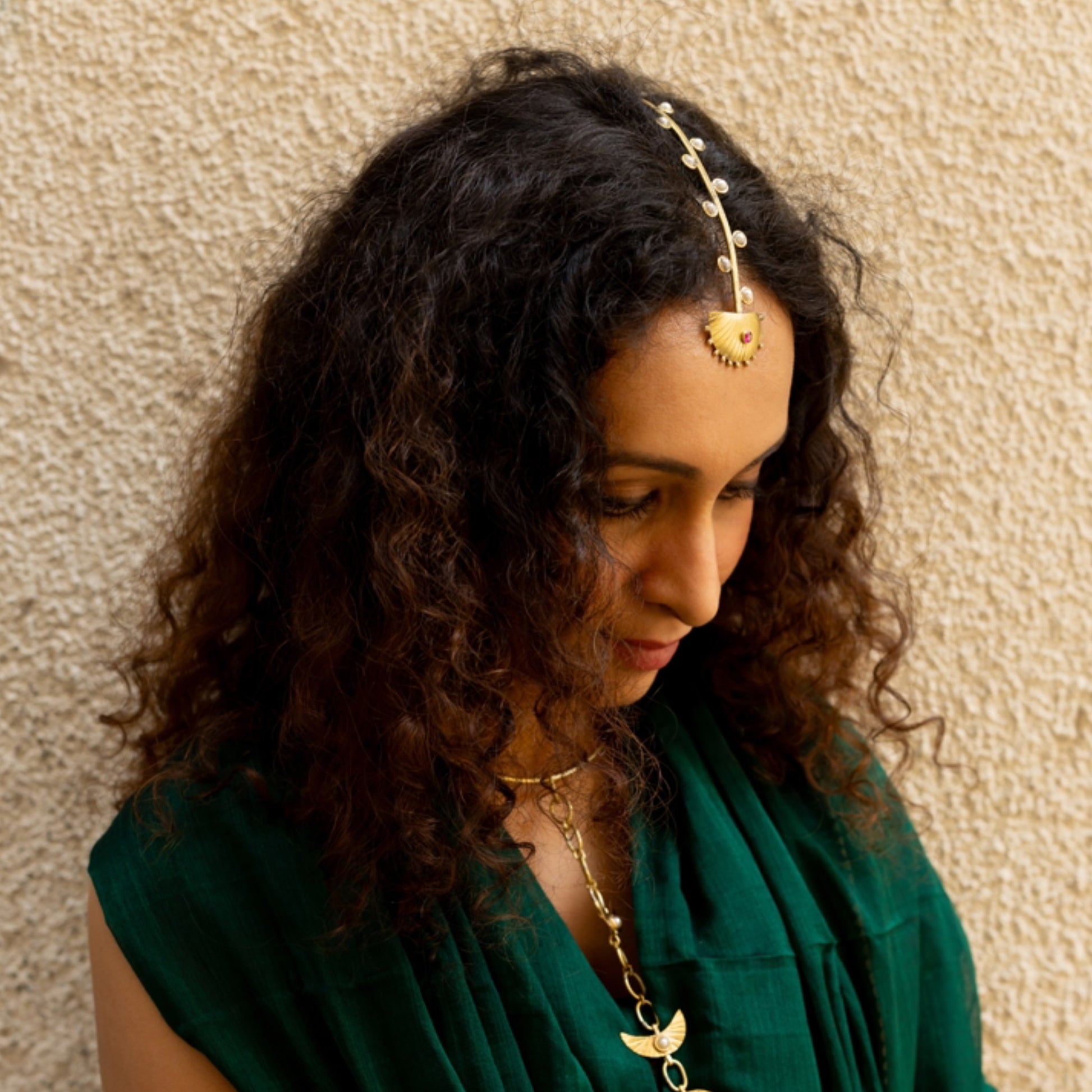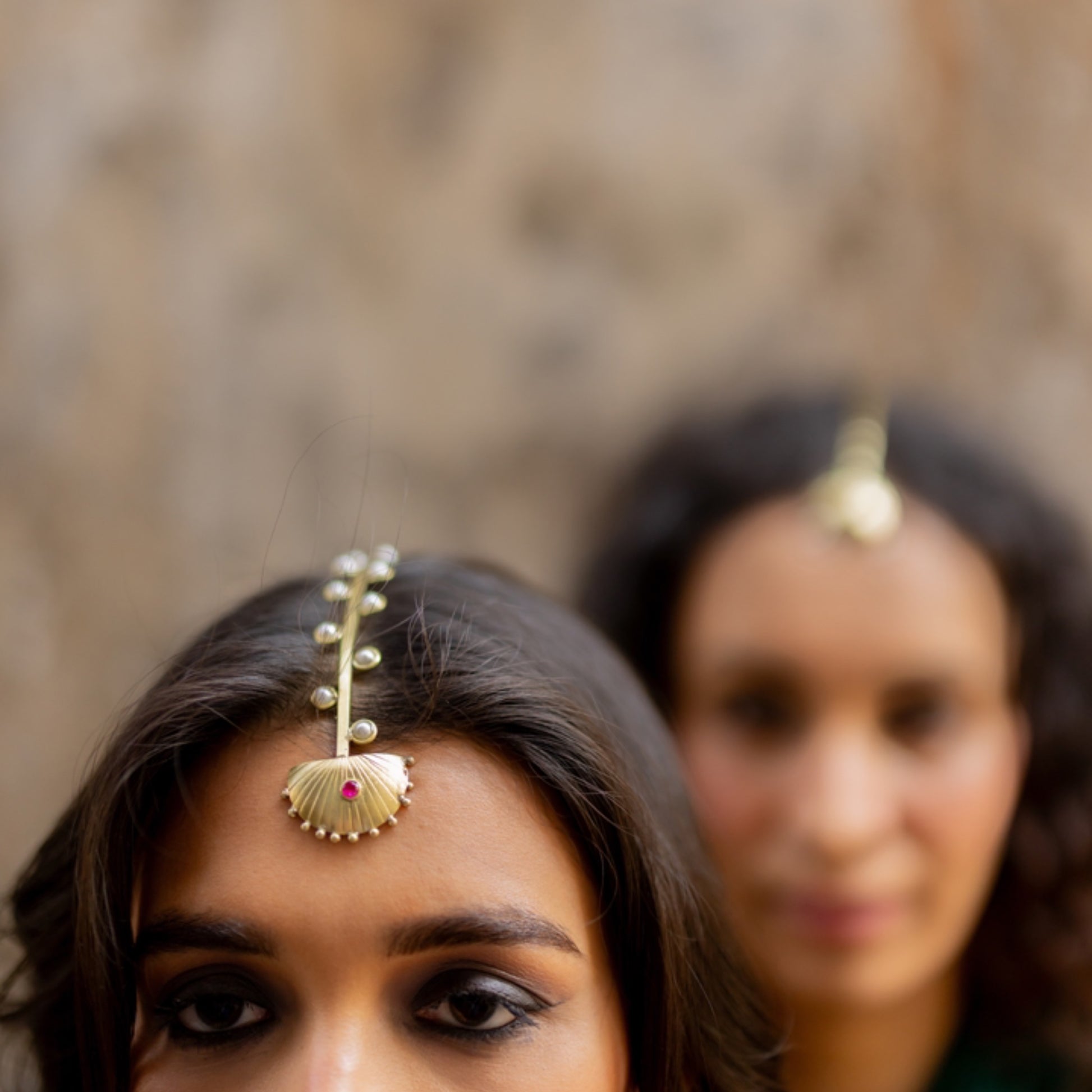 A brass headgear that molds to your shape. Just bend, place, and slay. No bobby pins, no fuss. It stays exactly where you want it. Bend it according to your head size and wear it like your crown.