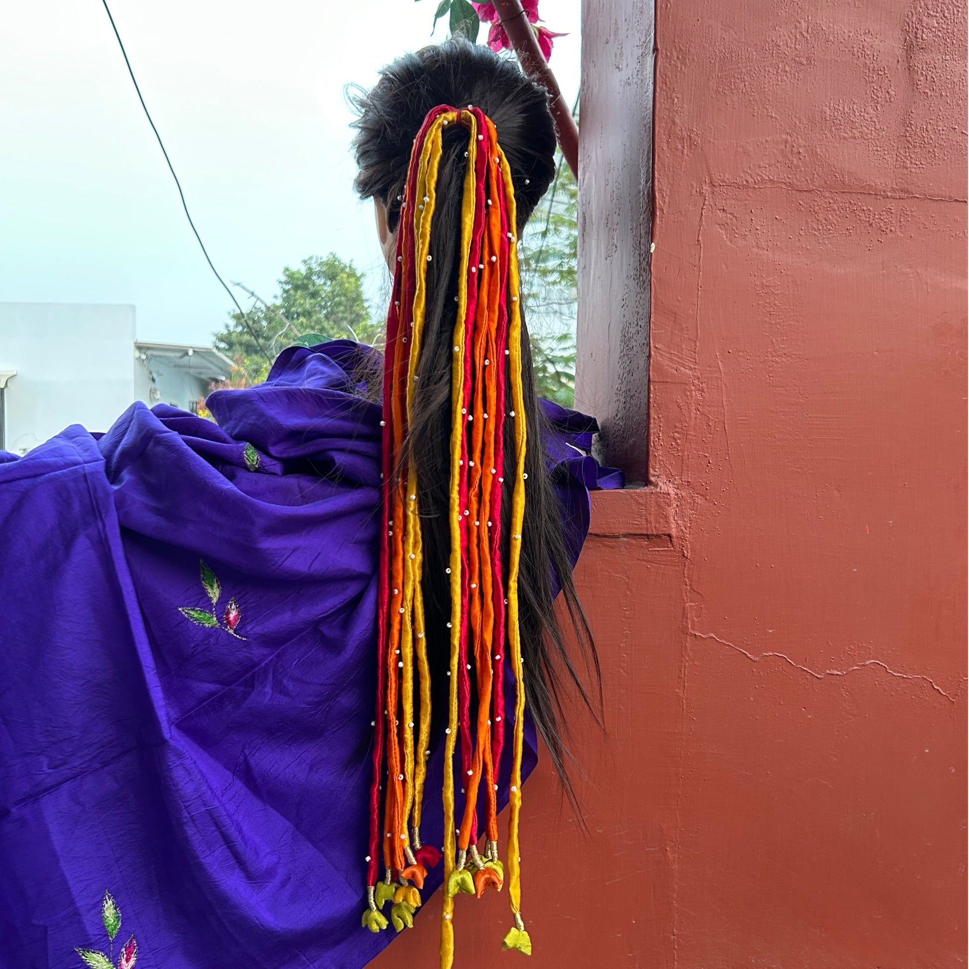 Silk hair strings 21 inch - Yellow, Orange, Pink