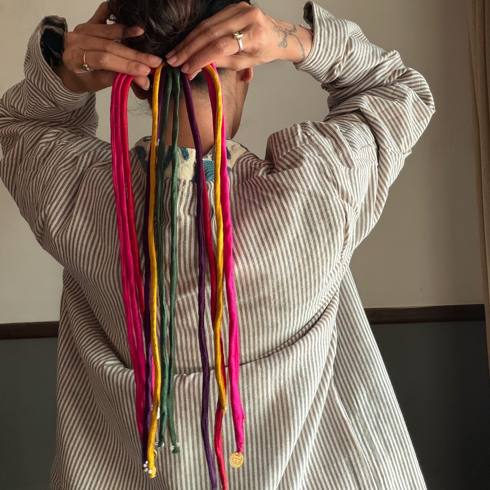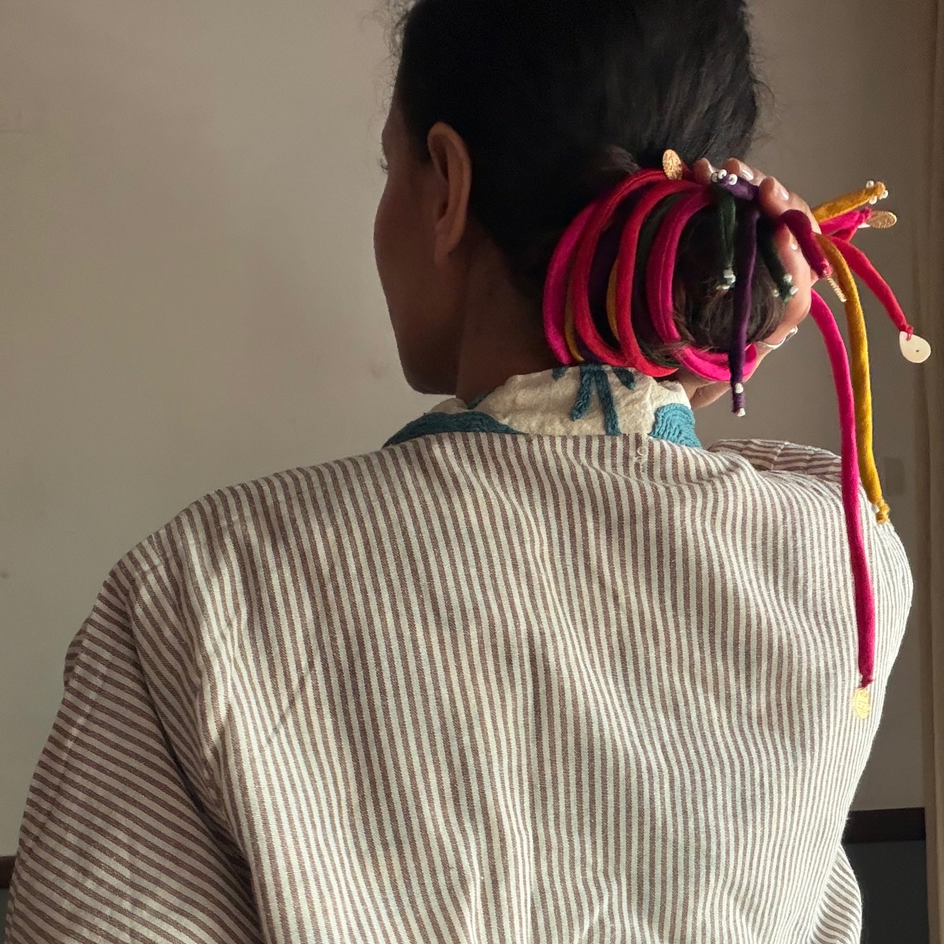 How to tie: There are two small strands that you can tie with your half bun, full bun, do braids or pin them up with tick tack pin.